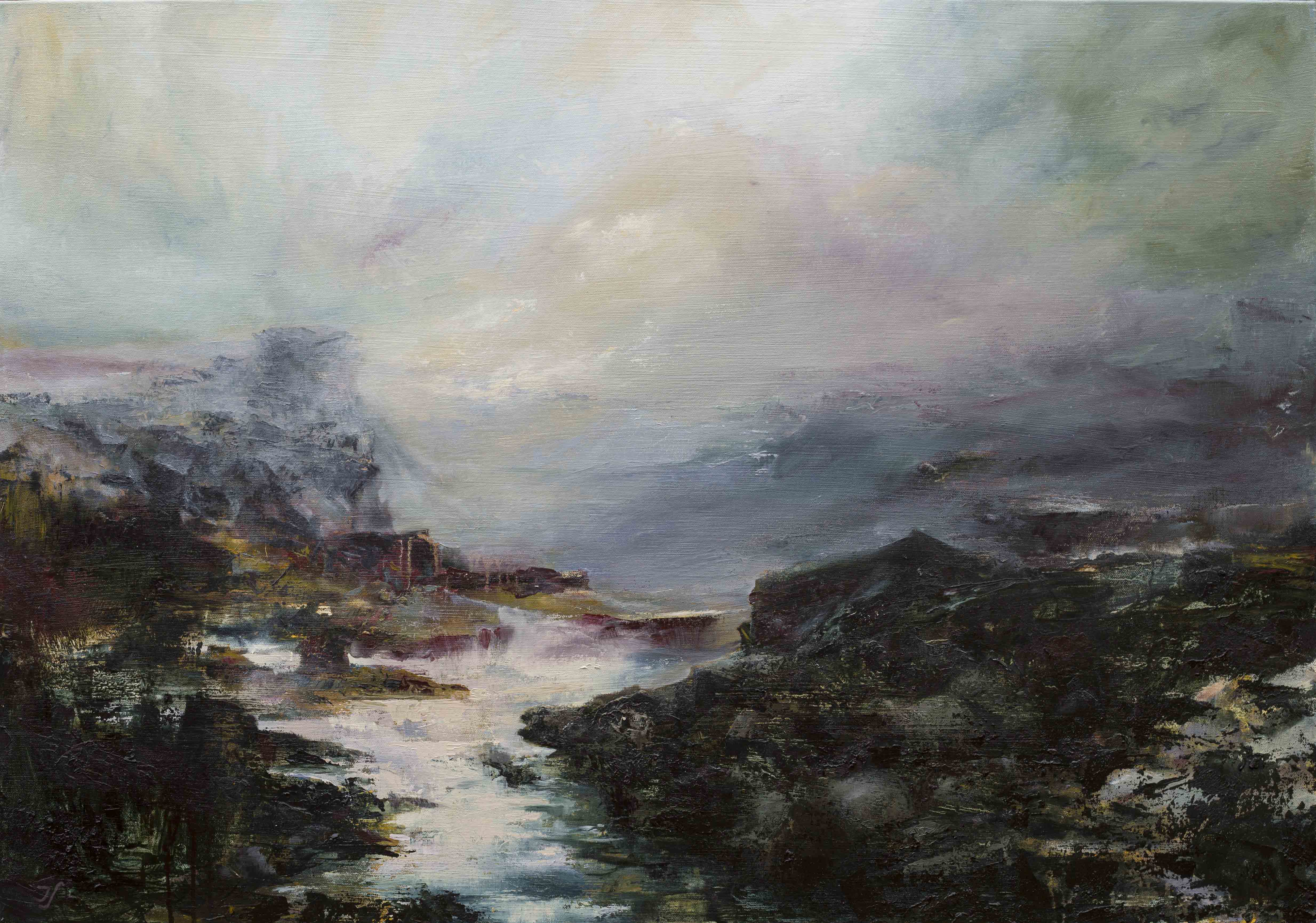 “This Thin Light” 100x70cm oil, wax and wood ash on canvas £850 (Sold) “The Pass” Sgurr an Fheadain, Black Cuillen, Isle of Skye 90 x 60 oil wax and wood as on canvas £650 (Sold) “The Dwelling” 122x56cm Oil and wax on panel £850 (Sold) “Fresh Waters” 61 x 45 cm oil, wax and wood ash on panel £350 ” Turning Tide ” 61 x 45 cm oil, wax and wood ash on panel £350 “As the dawn breaks” 100 x 70 cm oil on canvas £650 “A Morning Glade” 90 x 61 cm oil, wax, woodash and marble dust on panel £650