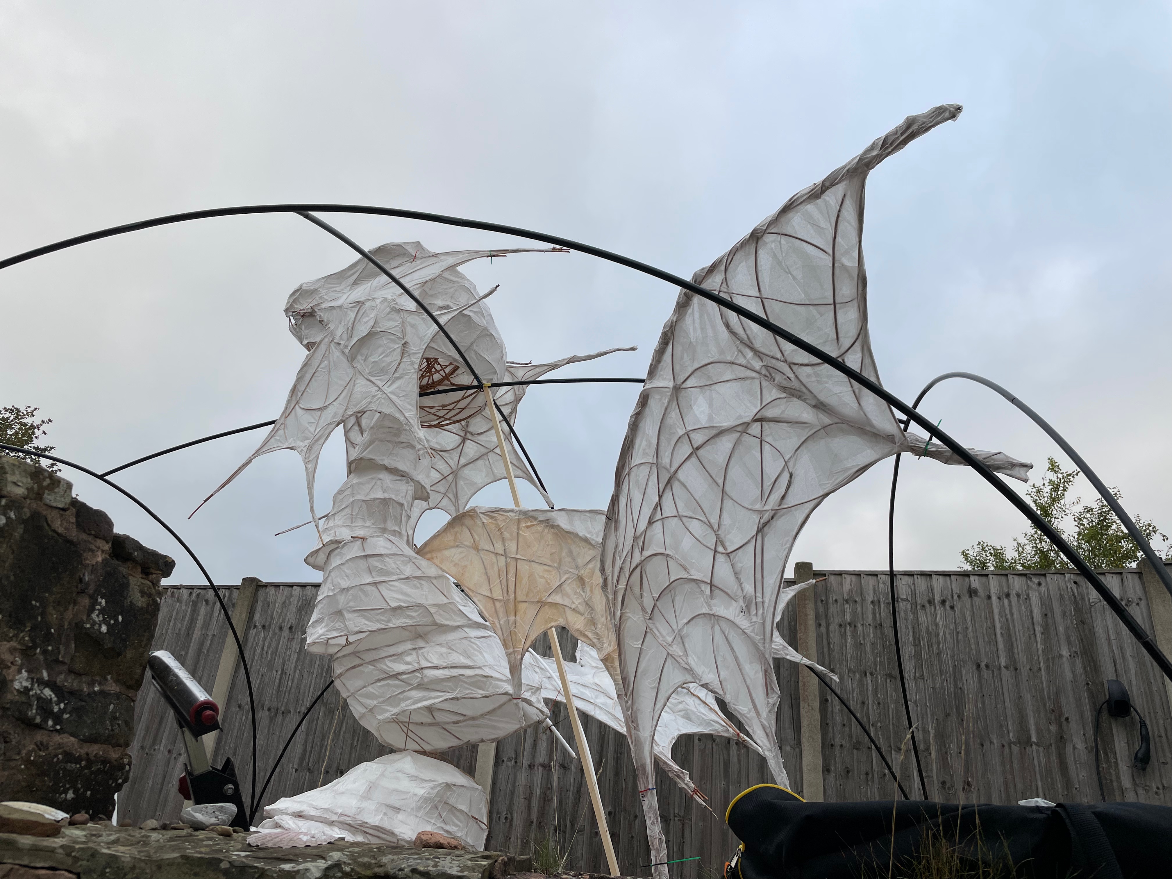 Images of the test production of installations for the production in February including 6m dragon to be flying, lit and projected with colour . Magical Animated dioramas and characters from the film.