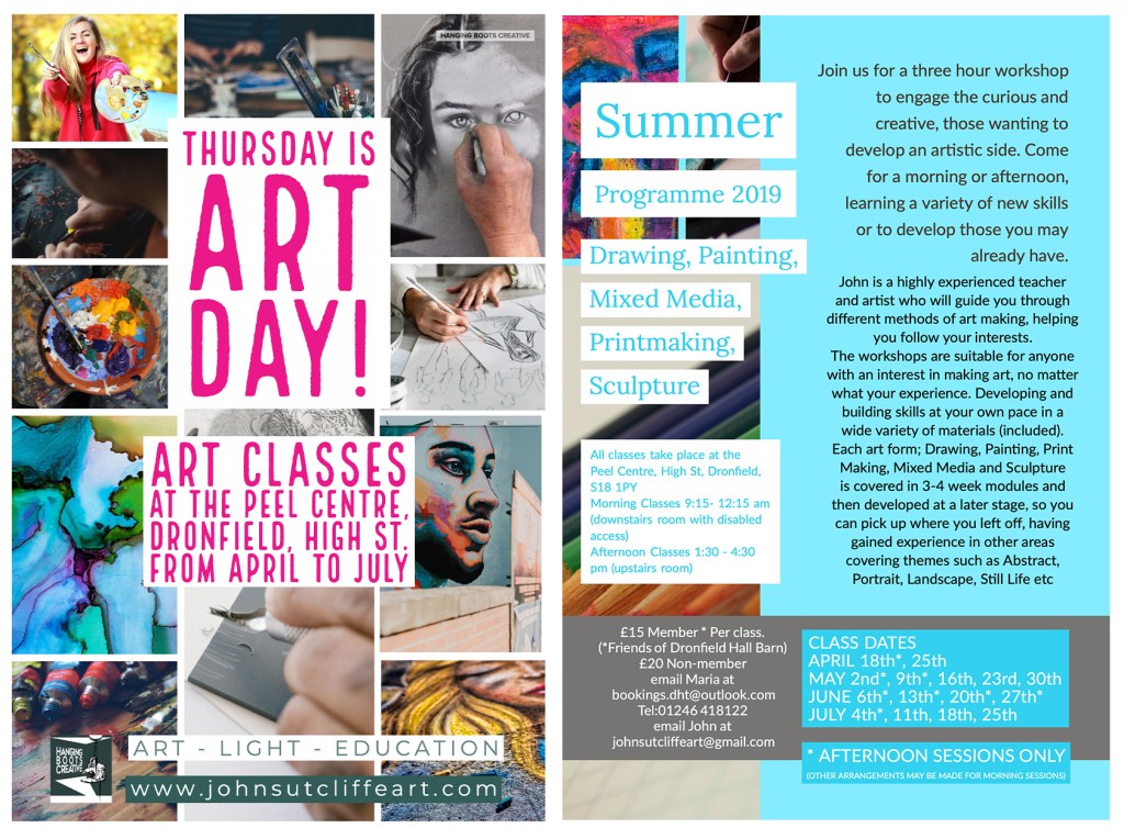 Bookings email Maria at bookings.dht@outlook.com or John at johnsutcliffeart@gmail.com